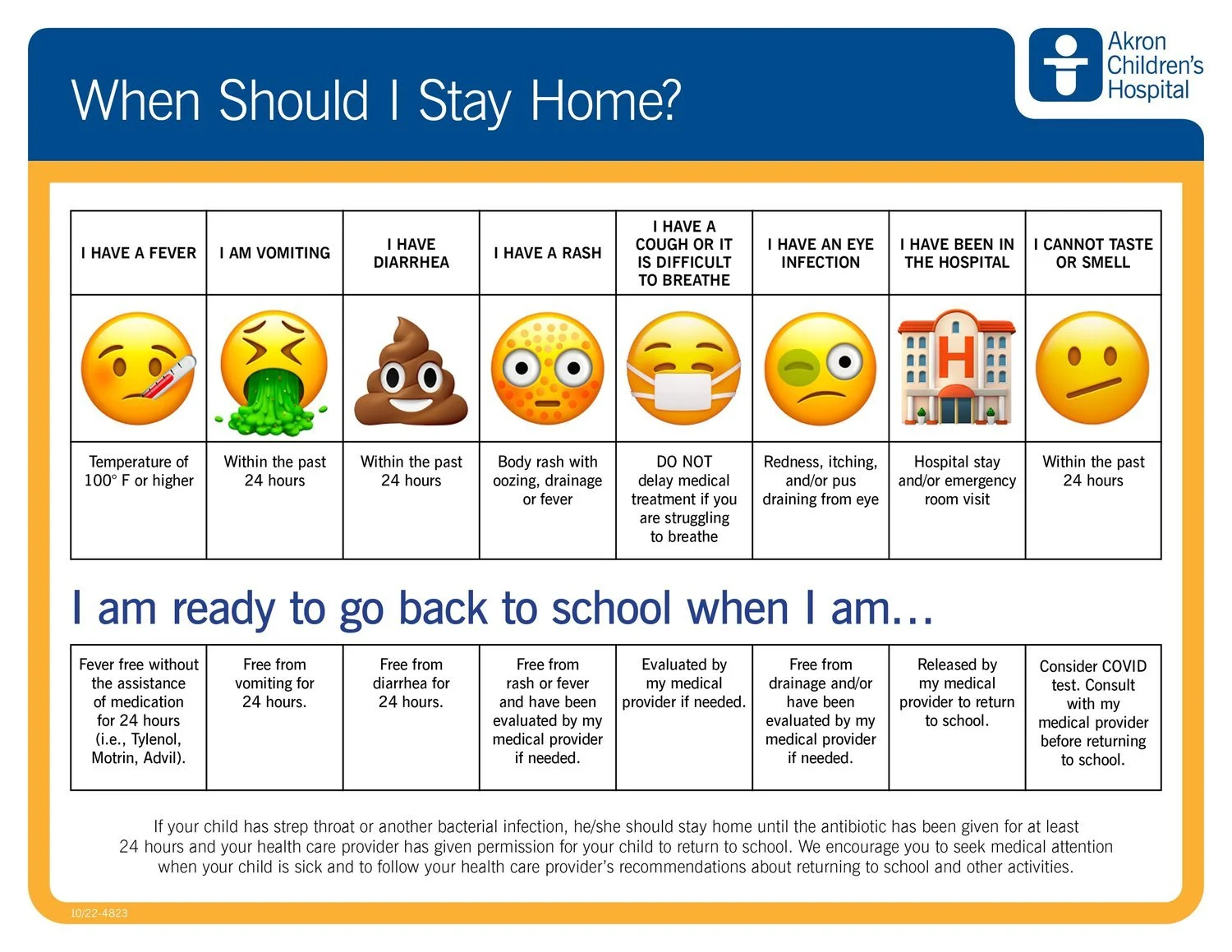 Keep your child home from school, day care, or camp for at least 24 hours after their fever is gone. (The fever should be gone without the use of a fever-reducing medicine.) A fever is defined as 100°F (37.8°C)* or higher. Item description